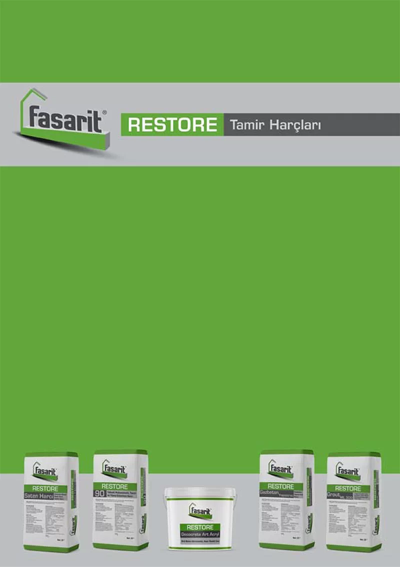 Restore S 05, Restore H20, Restore 1040 FL, Restore 1040 T, Restore Grout F 75, Restore Grout ML 300, Restore Grout ML 300 N, Restore F, Restore M, Restore Saten Harcı, Restore Dolgu Harcı, Restore Gaz Beton Yapıştırıcı, Restore Decocrete Art Restore, Decocrete Art Acryl, Restore Restocrete Kalın, Restore Restocrete İnce, Restore Nem ve Rutubet Sıvası, Restore Antikorozif Harç, Restore 90